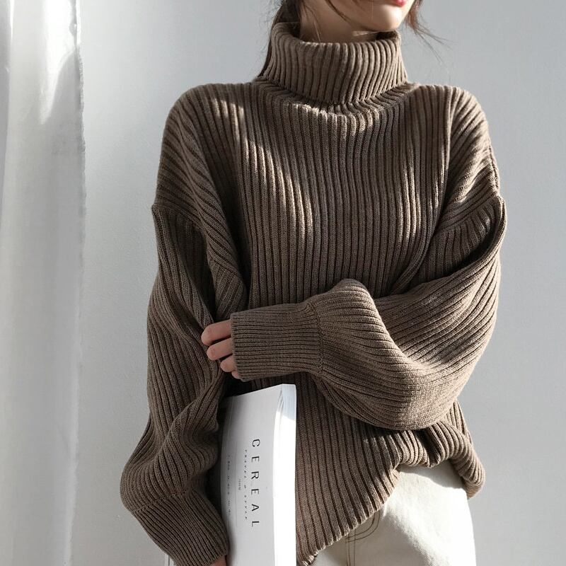 ハイネックのシンプルなセーター