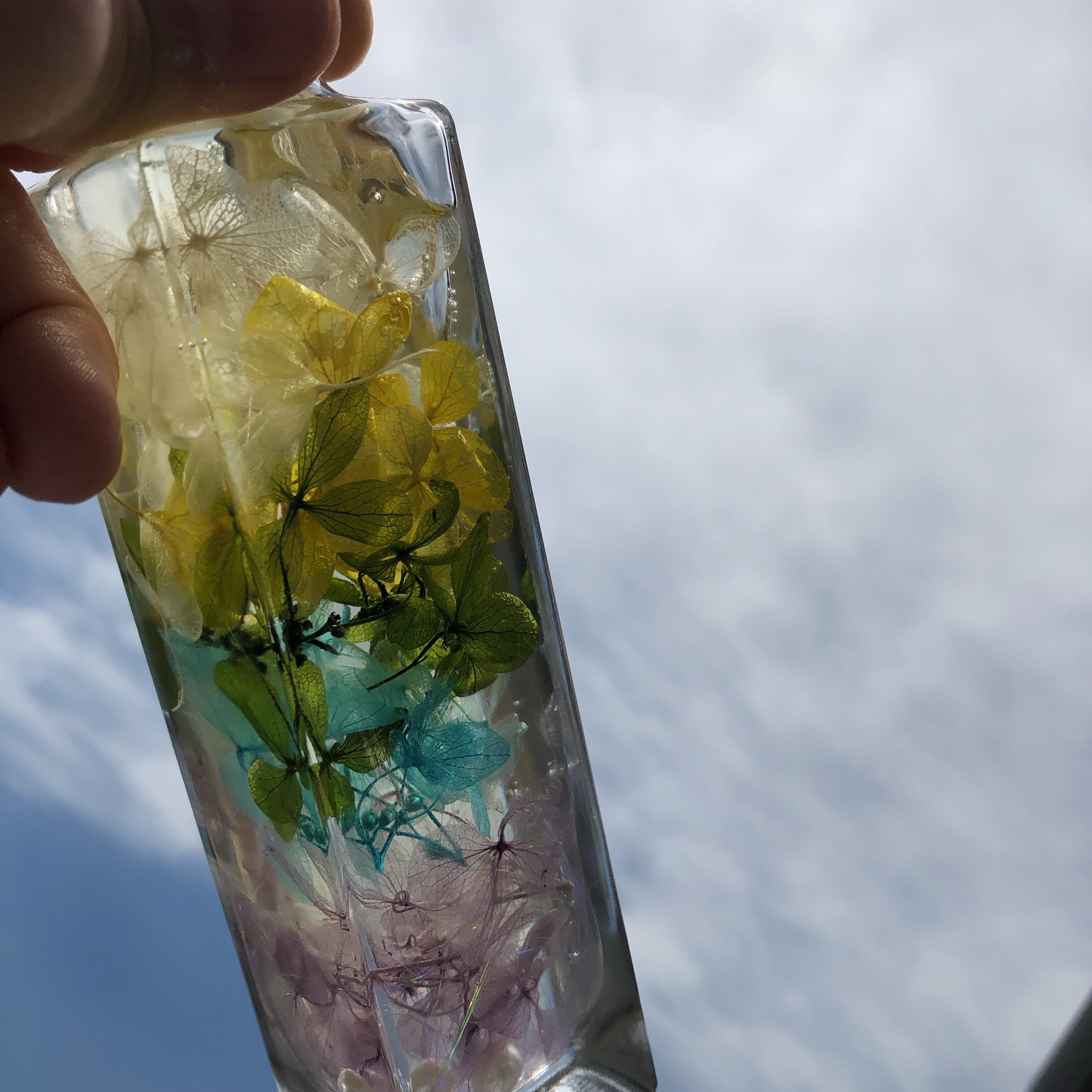 6月の誕生月のお花で作ったレインボーあじさいハーバリュウム
